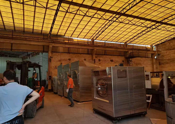 酒店大概有966張床位。按照入住率為80%計算。床位包括(雙人床配置:兩張床單、兩張被罩、兩個枕套、兩條毛巾,一條地巾)每張床位大概有3kg,布草的洗滌量大概在23202kg.配置兩臺120kg的全自動洗脫機(jī),一臺50kg全自動洗脫機(jī)、兩臺100kg干衣機(jī),一臺50kg干衣機(jī)、床單被套燙平,就使用3米長的雙輥筒熨平機(jī)。燙平機(jī)再搭配一臺3米的自動折疊機(jī)。西裝、風(fēng)衣之類的服裝,使用10kg的自動干洗機(jī)、夾衣機(jī)、人像機(jī)和去漬臺后整理設(shè)備。